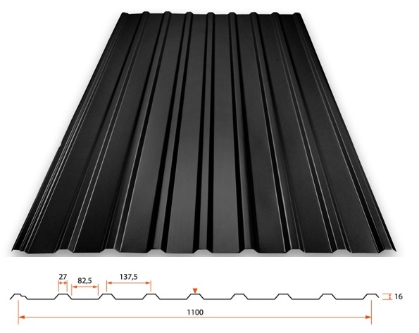 👉 Den låga profilhöjden på 16 mm ger ett ekonomiskt men ändå stabilt tak, medan vattenlåset i sidoöverlappet ger extra skydd mot läckage.